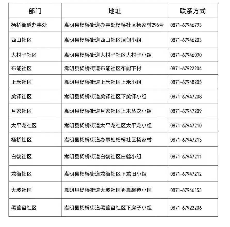 附:嵩明縣楊橋街道各社區(qū)咨詢報(bào)備地址、電話