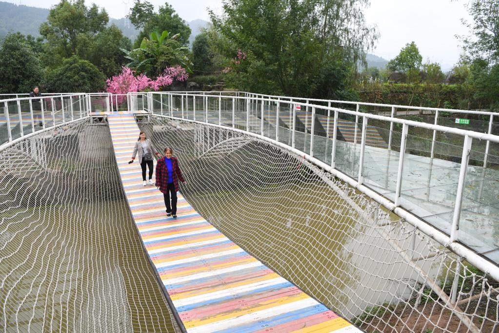 10月31日,在重慶市開州區(qū),游客在王智勇領(lǐng)頭創(chuàng)辦的田園農(nóng)旅綜合體景區(qū)游玩。新華社記者王全超 攝