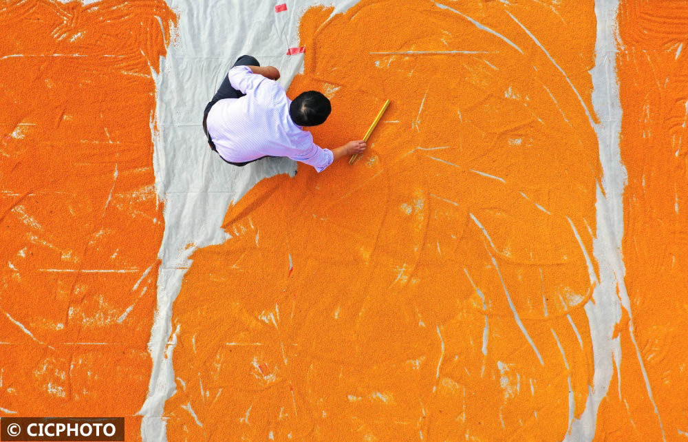 ↑2022年11月1日,江蘇省淮安市洪澤區(qū)東雙溝鎮(zhèn)邵莊村,蜂農(nóng)在晾曬花粉。(無(wú)人機(jī)照片)CICPHOTO/劉彬 攝