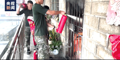 蔣超和戰(zhàn)友邊沖著屋內(nèi)大喊