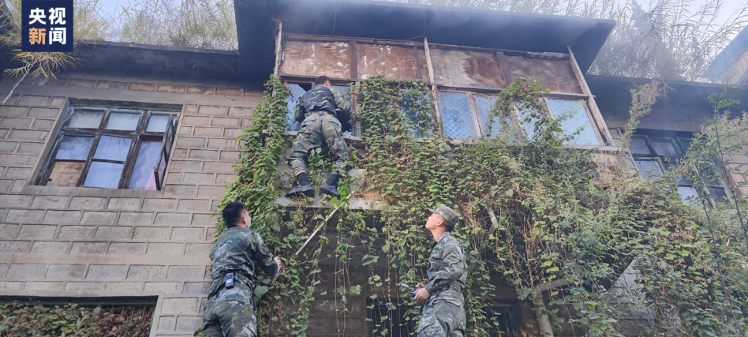 隨后,兩名武警戰(zhàn)士繞到房子后側(cè)