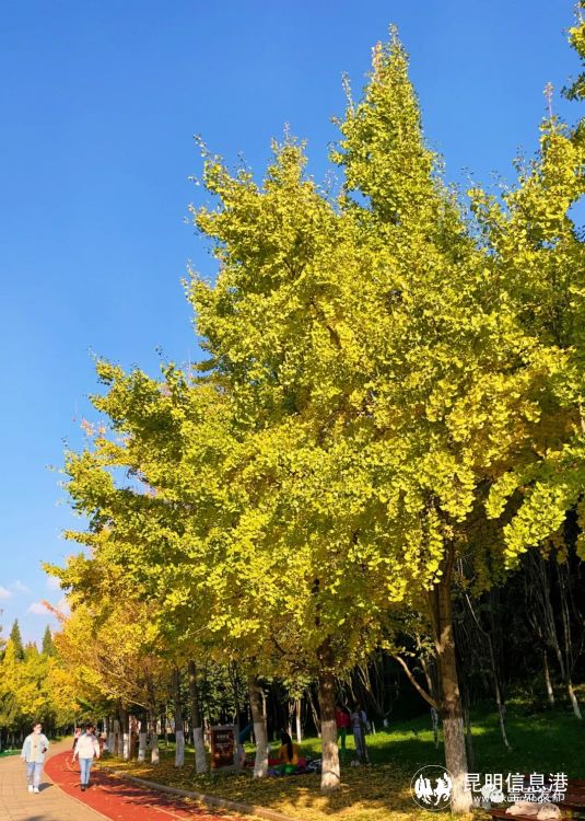 昆明信息港訊 記者段佳琪 銀杏作為世界上最古老的樹種之一,被稱為恐龍時(shí)代的“活化石”。每當(dāng)秋意漸濃,昆明呈貢就被染成金黃,在各交通干道、公園、各校園、回回營(yíng)社區(qū)等,那一抹亮黃色總能給人帶來(lái)溫暖,仿佛走入一個(gè)童話世界。