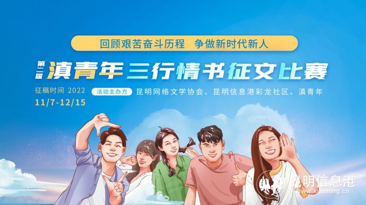 昆明信息港訊 記者周永燁 11月7日,昆明網(wǎng)絡(luò)文學(xué)協(xié)會(huì)聯(lián)合昆明信息港彩龍社區(qū)、滇青年發(fā)起了以“回顧艱苦奮斗歷程,爭(zhēng)做新時(shí)代新人”為主題的第二屆滇青年三行情書(shū)征文比賽暨小滇圖書(shū)計(jì)劃。活動(dòng)旨在激發(fā)高校學(xué)生愛(ài)國(guó)主義情懷,增強(qiáng)高校學(xué)生愛(ài)國(guó)主義認(rèn)知,促進(jìn)高校學(xué)生愛(ài)國(guó)主義行為。