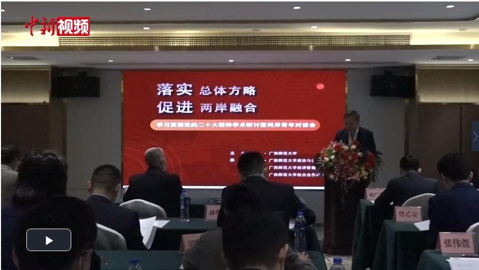 【解說】近日,“落實(shí)總體方略,促進(jìn)兩岸融合——學(xué)習(xí)貫徹黨的二十大精神學(xué)術(shù)研討暨兩岸青年對話會”(以下稱研討對話會)在廣西桂林舉辦。多位與會的大陸臺灣青年代表表示,愿意架設(shè)溝通橋梁,共促兩岸融合。