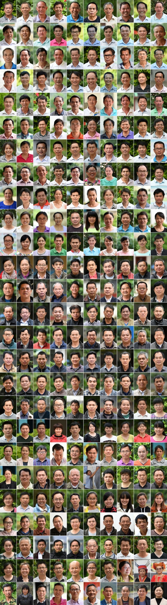 ↑ 這張拼版照片是2012年至2022年拍攝的260名山區(qū)教師的肖像,他們是廣西天等縣、大新縣、全州縣、灌陽縣、靈川縣、昭平縣、上思縣、都安瑤族自治縣、大化瑤族自治縣、龍勝各族自治縣、三江侗族自治縣、融水苗族自治縣、富川瑤族自治縣、金秀瑤族自治縣部分山區(qū)老師,絕大部分是教學(xué)點(diǎn)老師。