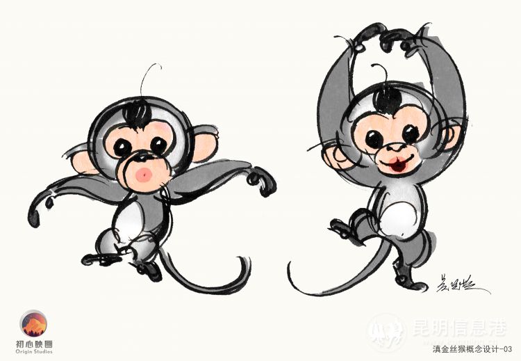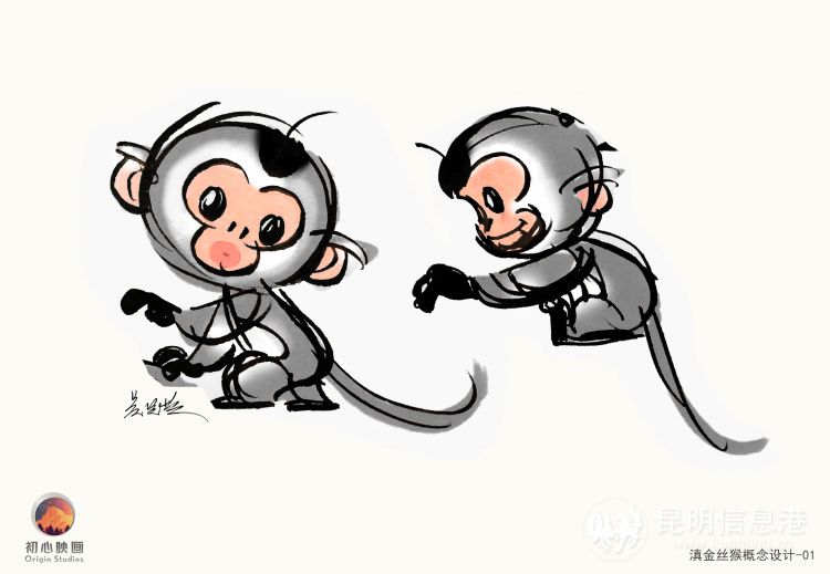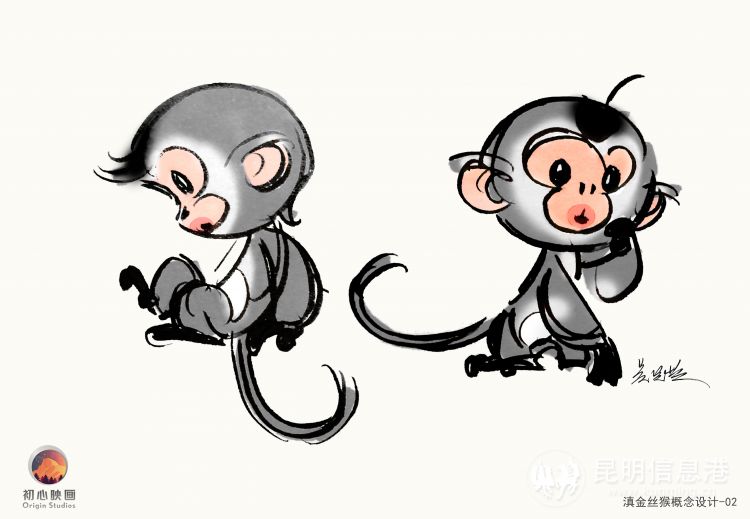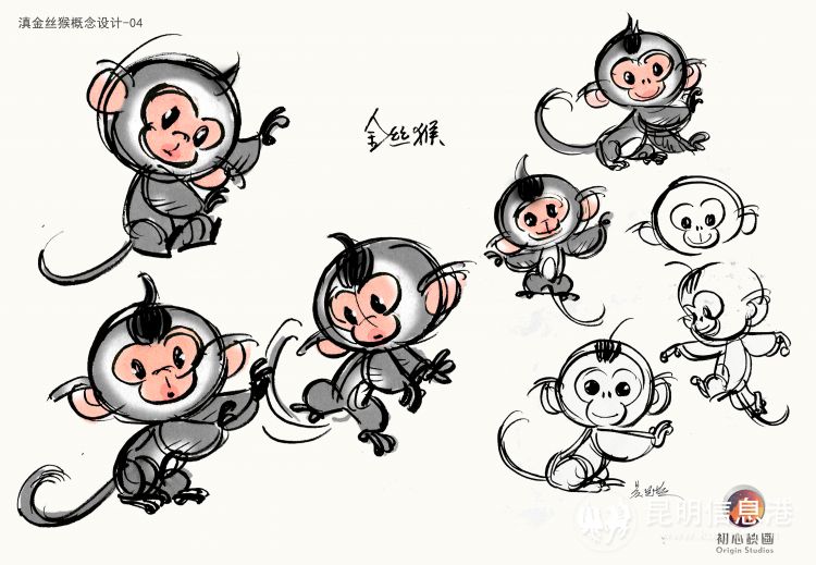 在“塔塔”的形象構造上,兩位藝術家匠心獨運,設計團隊和園區(qū)通力合作緊密配合。不同于傳統(tǒng)意義上的猴子形象,滇金絲猴外形最大的特點除了它飽滿的嘴唇外,就是鼻子和頭發(fā)了,所以最終的設計歸納就牢牢抓住了這一鮮明特點。雖然國內不乏以小猴子為原型的IP,但典型卻不多,塔塔從形象上來講,真正做到了差異化。