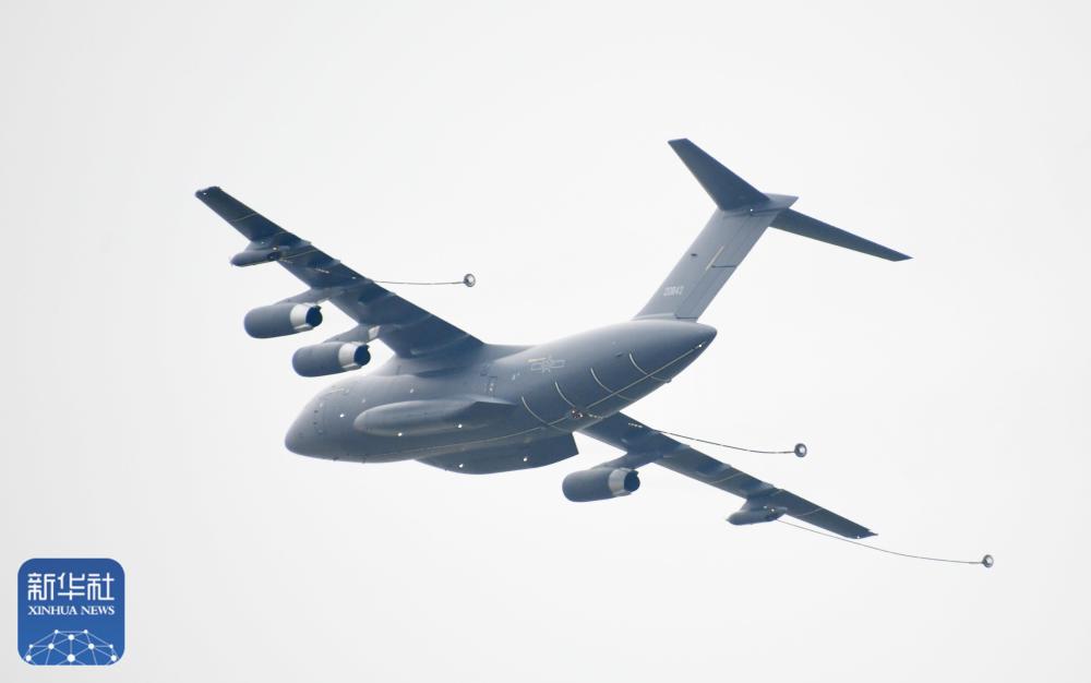 11月8日,運(yùn)油-20在航展上進(jìn)行飛行展示。 新華社記者 盧漢欣 攝