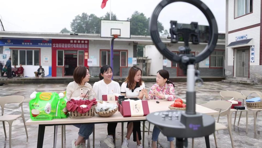 村干部在金釵村便民服務中心開展直播帶貨。(受訪者供圖)
