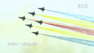 空軍八一飛行表演隊(duì),6架殲-10呈現(xiàn)了大仰角躍升、六機(jī)編隊(duì)斤斗、六機(jī)同步橫滾等動(dòng)作,不僅精彩震撼,同時(shí)也具備很高的實(shí)戰(zhàn)價(jià)值。