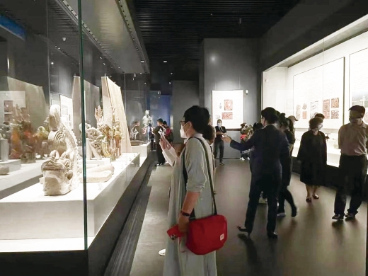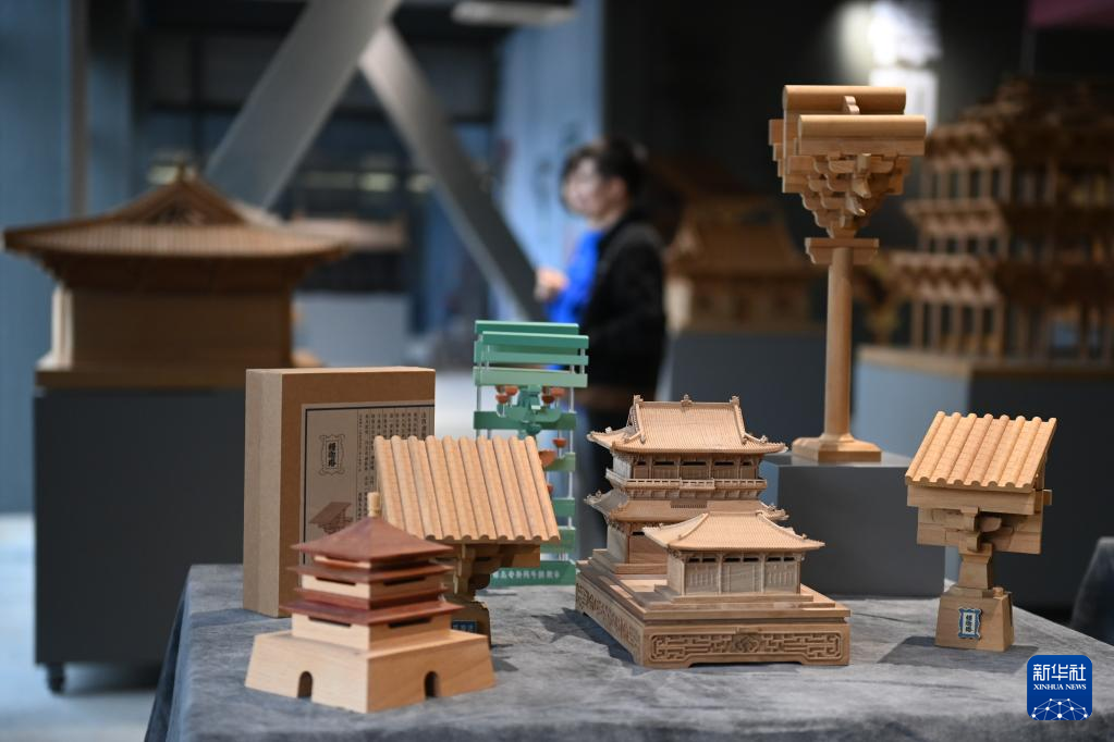 11月4日,觀眾在大運河1986文創(chuàng)園的中國榫卯技藝體驗空間參觀古建筑積木。新華社記者黃宗治/攝
