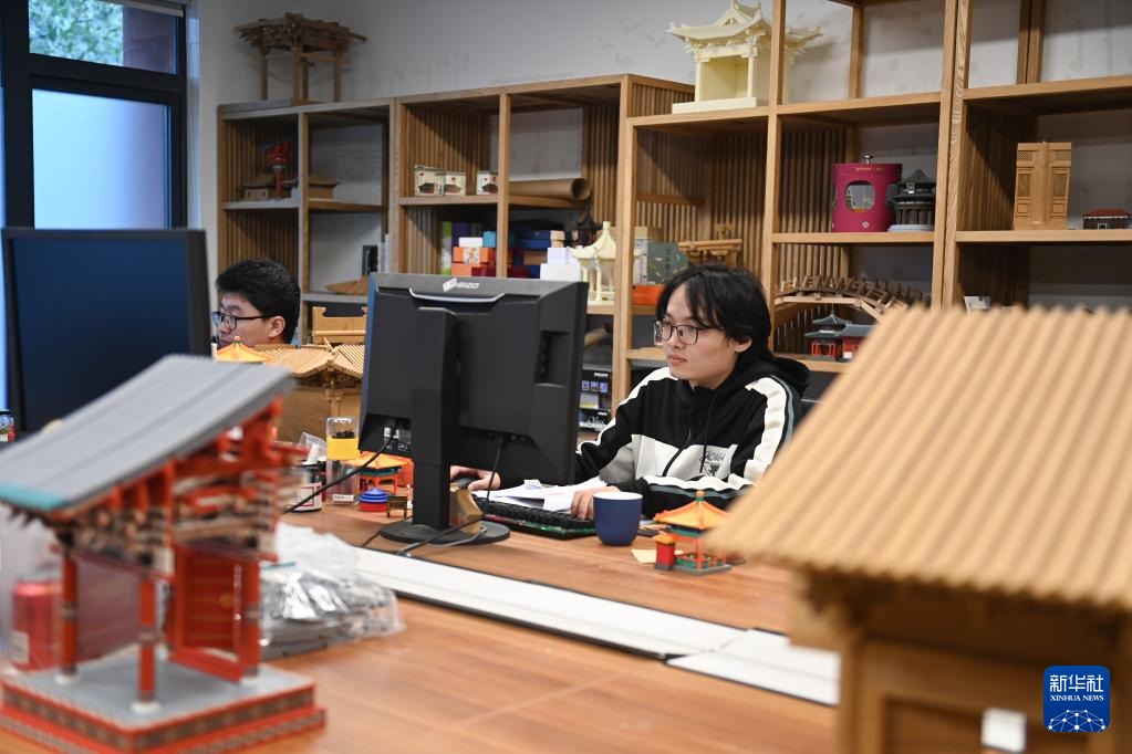 11月4日,一家入駐大運河1986文創(chuàng)園的企業(yè)員工在設計中國古建筑積木產(chǎn)品。新華社記者黃宗治/攝