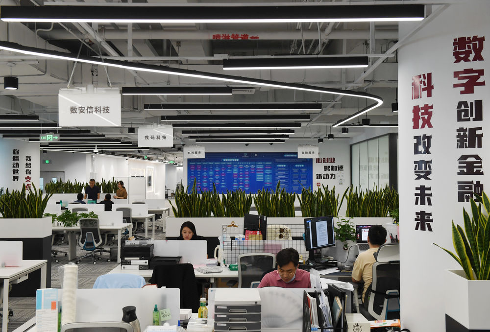 工作人員在位于首都功能核心區(qū)內(nèi)的新動力金融科技中心工作(2022年9月14日攝)。新華社記者 張晨霖 攝