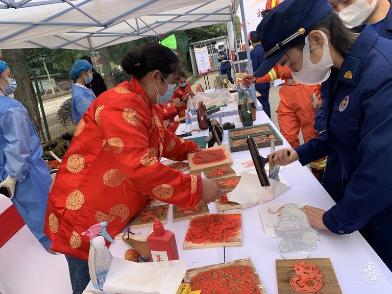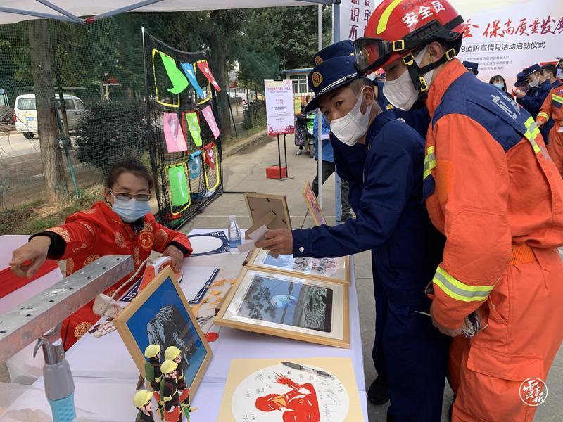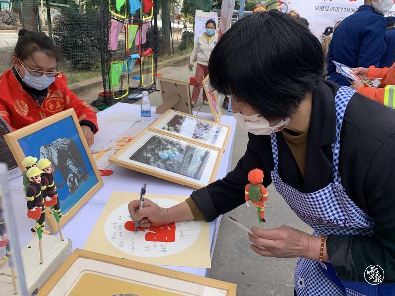 記者在活動現(xiàn)場看到,烙畫、剪紙、皮雕、面塑等非遺手藝大師受邀參與了活動互動,在他們的巧手下,一份份消防主題的非遺獎品成為了現(xiàn)場圍觀市民和消防員的追捧對象,大家紛紛通過消防趣味問答贏得了心儀的非遺手工。據(jù)介紹,此次119消防宣傳月活動,空港消防還采取了線上“云直播”、線下“童心繪消防”畫展一系列線上線下跨界融合的全新方式進(jìn)行宣傳推廣。