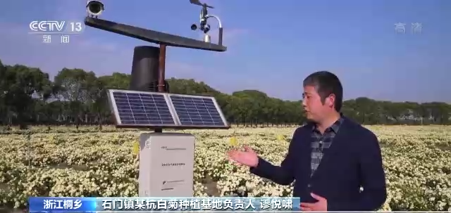 浙江桐鄉(xiāng)石門鎮(zhèn)某杭白菊種植基地負(fù)責(zé)人 謬悅嘯:這是一臺(tái)無(wú)線農(nóng)業(yè)氣象綜合監(jiān)測(cè)站,它就像我們的眼睛,以前我們都是走到土地里面查看我們的一個(gè)種植情況,現(xiàn)在它能夠給我們檢測(cè)到光照、土壤、水分等信息,傳送到大數(shù)據(jù)平臺(tái),來(lái)幫助我們預(yù)測(cè)氣象所帶來(lái)的一個(gè)病蟲害等問題,為我們杭白菊提質(zhì)增效、保駕護(hù)航。