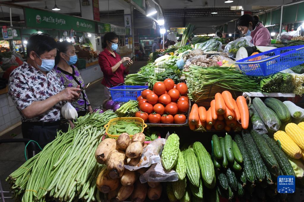 11月9日,在廣西南寧市濱湖路一家農(nóng)貿(mào)市場,市民在選購蔬菜。國家統(tǒng)計局9日發(fā)布數(shù)據(jù),10月份,全國居民消費價格指數(shù)(CPI)同比上漲2.1%,漲幅比上月回落0.7個百分點;環(huán)比上漲0.1%,漲幅比上月回落0.2個百分點。新華社記者陸波岸攝