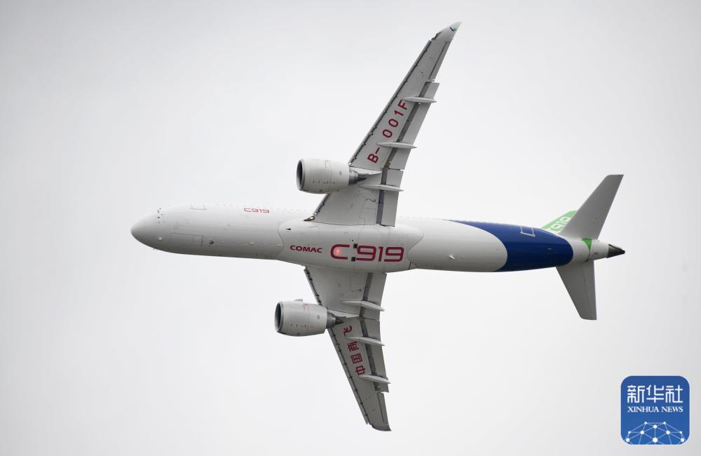 國產(chǎn)大飛機(jī)C919在第十四屆中國航展上進(jìn)行飛行展示(11月8日攝)。新華社記者 盧漢欣 攝