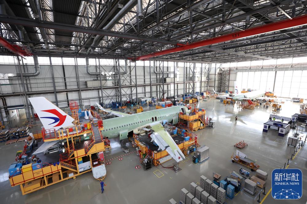 在空客天津總裝線,工作人員進(jìn)行空客A320系列飛機(jī)總裝(2022年2月24日攝)。新華社發(fā)