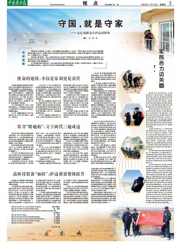 國(guó)無(wú)防不立,邊無(wú)民不安。習(xí)主席在黨的二十大報(bào)告中指出:“加強(qiáng)國(guó)防動(dòng)員和后備力量建設(shè),推進(jìn)現(xiàn)代邊??辗澜ㄔO(shè)?!蔽覈?guó)陸地邊境線總長(zhǎng)約2.2萬(wàn)公里,具有點(diǎn)多、線長(zhǎng)、面廣等特征。護(hù)邊員和邊民是我國(guó)邊疆地區(qū)黨委政府設(shè)在邊境一線,協(xié)助邊防部隊(duì)守邊巡邊護(hù)邊、維護(hù)邊境地區(qū)安全和穩(wěn)定的群眾性力量。