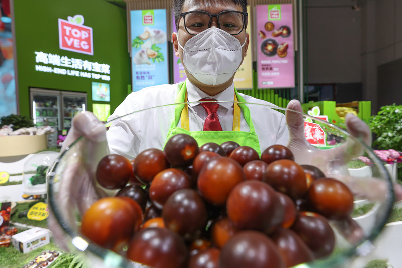 進(jìn)博會上展出的歐洲紫番茄。張海峰 攝