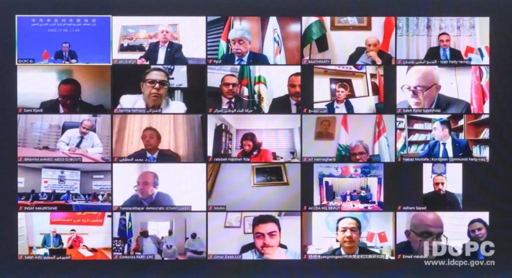 11月8日,中共中央對外聯(lián)絡(luò)部以線上線下相結(jié)合方式舉辦第三屆中國-阿拉伯國家政黨對話會。阿爾及利亞民族解放陣線黨領(lǐng)導(dǎo)人、民族院議長古吉勒,也門全國人民大會黨副總書記、議長巴爾卡尼等阿拉伯國家政黨領(lǐng)導(dǎo)人,以及部分阿拉伯國家駐華使節(jié)參會。中聯(lián)部負責(zé)同志向阿方介紹了中共二十大主要情況。