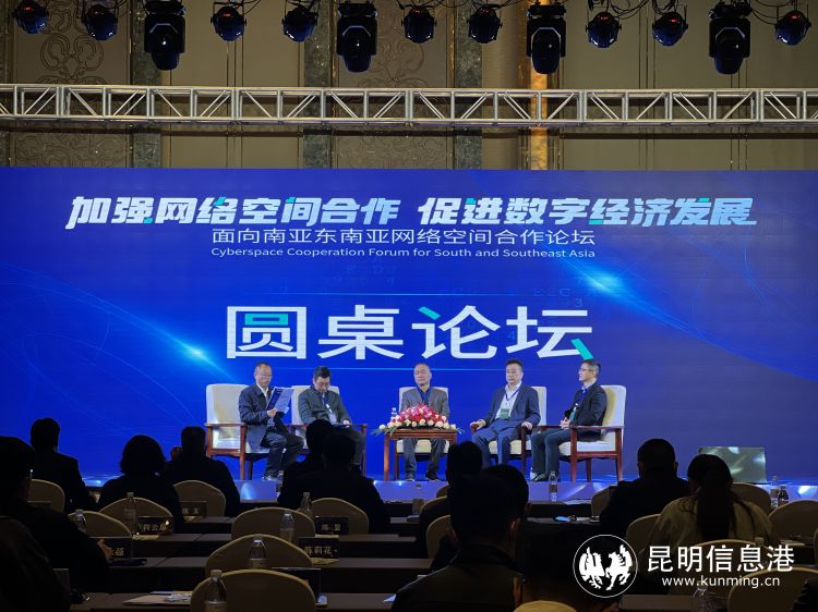 在圓桌論壇環(huán)節(jié),云南省人大常委會(huì)委員,云南大學(xué)軟件學(xué)院院長(zhǎng)姚紹文、云南大學(xué)經(jīng)濟(jì)學(xué)院副院長(zhǎng),云南數(shù)字經(jīng)濟(jì)研究院常務(wù)副院長(zhǎng)張國(guó)勝、昆明理工大學(xué)信息工程與自動(dòng)化學(xué)院副院長(zhǎng)王紅斌、云南省電子商務(wù)協(xié)會(huì)會(huì)長(zhǎng)申和平、GMS跨境電子商務(wù)合作平臺(tái)企業(yè)聯(lián)盟主席易宏就“網(wǎng)絡(luò)空間治理”“數(shù)字經(jīng)濟(jì)合作”等相關(guān)議題展開(kāi)討論,現(xiàn)場(chǎng)氣氛熱烈。