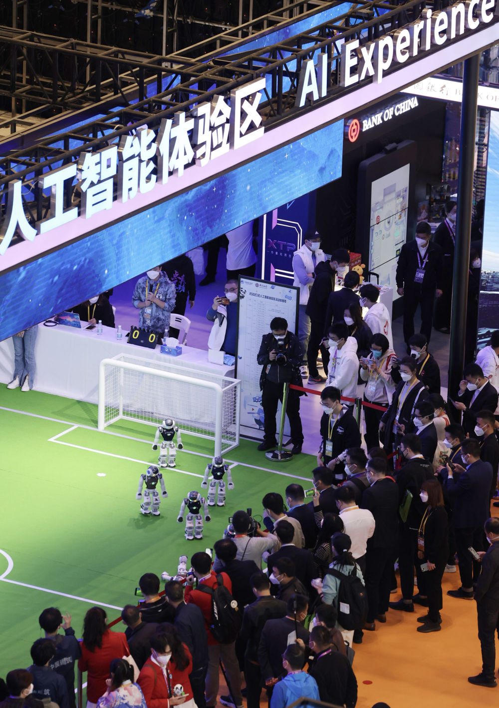 2022年11月5日,參觀者在第五屆進(jìn)博會(huì)人工智能專(zhuān)區(qū)觀看機(jī)器人表演。新華社記者 金立旺 攝