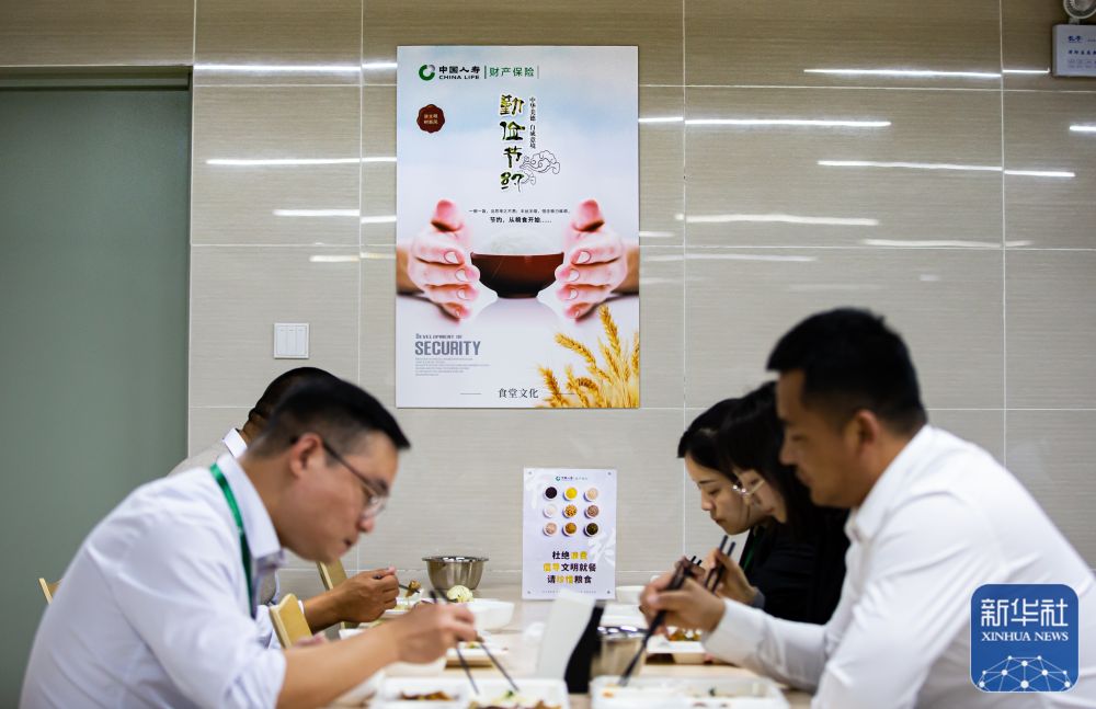 11月11日,在云南省昆明市,中國人壽財(cái)險(xiǎn)云南省分公司職工在公司食堂就餐。新華社發(fā)(唐金鵬/攝)