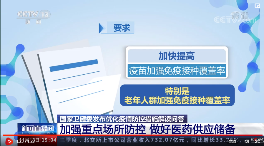 《通知》要求,制定分級分類診療方案,做好醫(yī)務(wù)人員全員培訓(xùn),做好住院床位和重癥床位準(zhǔn)備,增加救治資源。加快提高疫苗加強(qiáng)免疫接種覆蓋率,特別是老年人群加強(qiáng)免疫接種覆蓋率。做好藥物供應(yīng)儲備,滿足患者用藥需求,尤其是重癥高風(fēng)險和老年患者治療需求,做好有效中醫(yī)藥方藥的儲備。