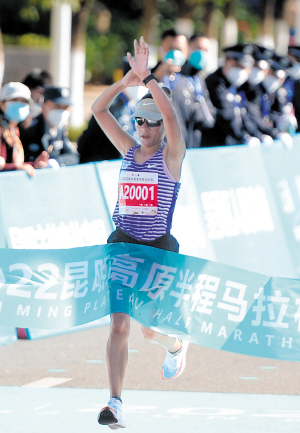 “這是我第一次到昆明參加比賽,這里氣候太好了,含氧量也高,整個賽道特別美,觀眾也很熱情。” 青海長跑運動員馬文良在奪得男子半馬冠軍后高興地說。