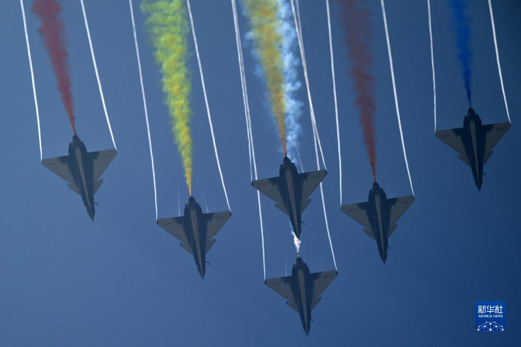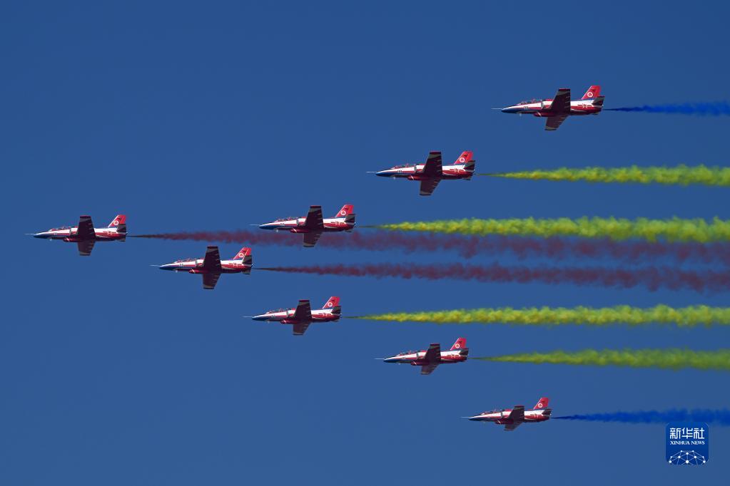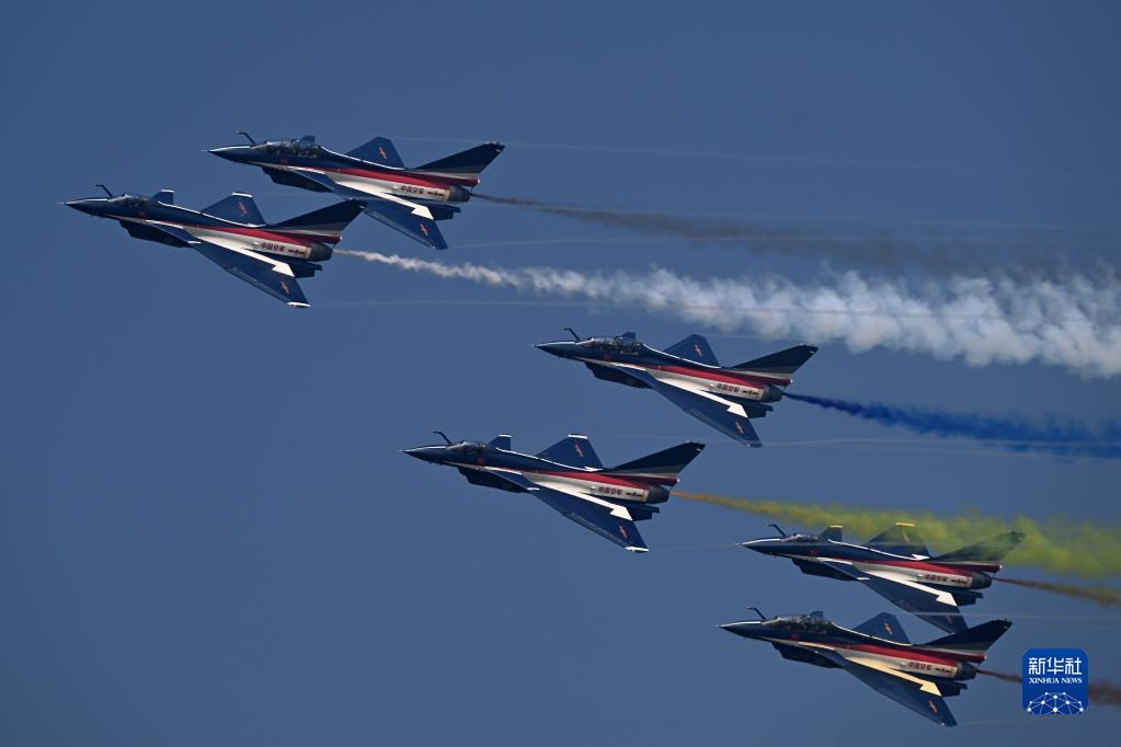 11月13日,第十四屆中國航展閉幕當(dāng)天,空軍八一飛行表演隊進(jìn)行飛行表演。新華社發(fā)(余紅春 攝)