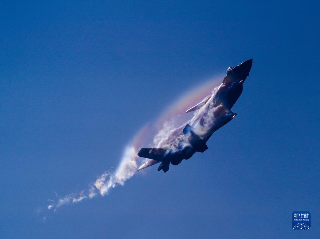 11月13日,第十四屆中國航展閉幕當(dāng)天,空軍殲-20戰(zhàn)機(jī)進(jìn)行飛行展示。新華社發(fā)(欒鋮 攝)