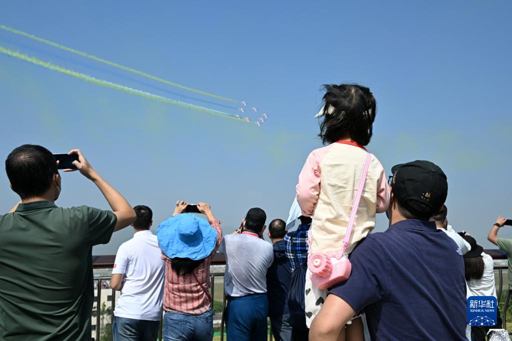 11月13日,第十四屆中國航展閉幕當(dāng)天,觀眾在現(xiàn)場觀看飛行表演。新華社發(fā)(余紅春 攝)