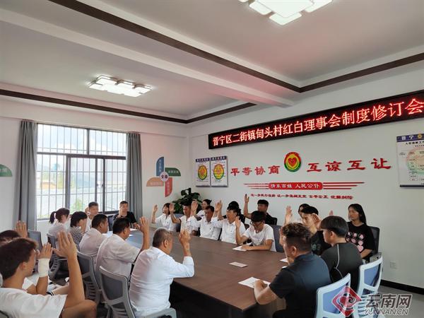 晉寧區(qū)二街鎮(zhèn)甸頭村組織村民代表開展“爭當新時代文明先鋒”紅白理事會制度修訂會