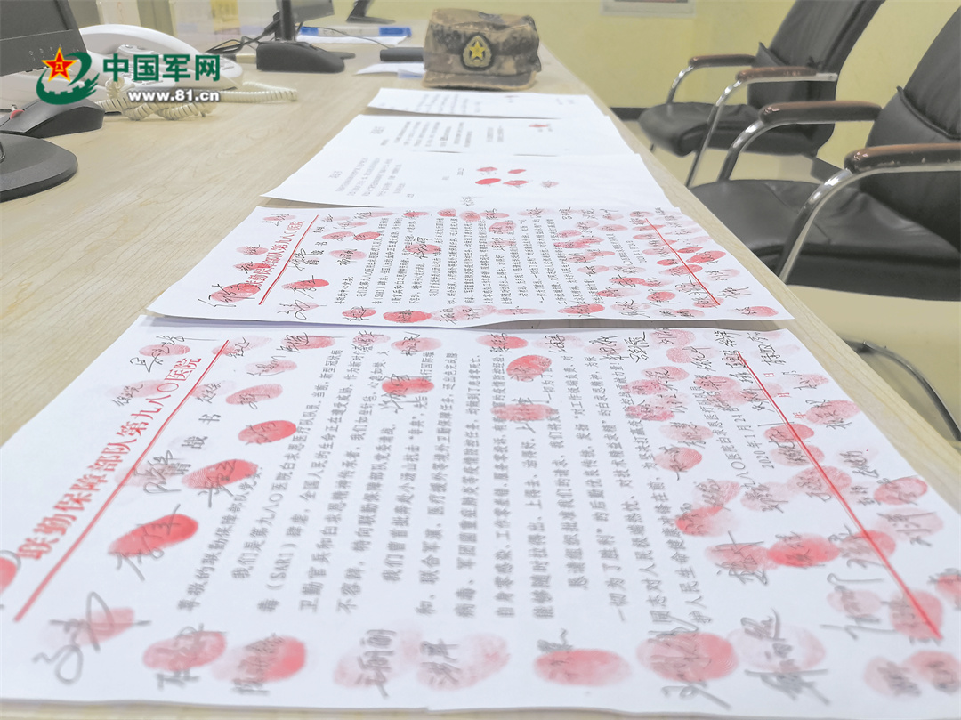 第980醫(yī)院官兵按滿紅手印的請戰(zhàn)書。劉會賓攝