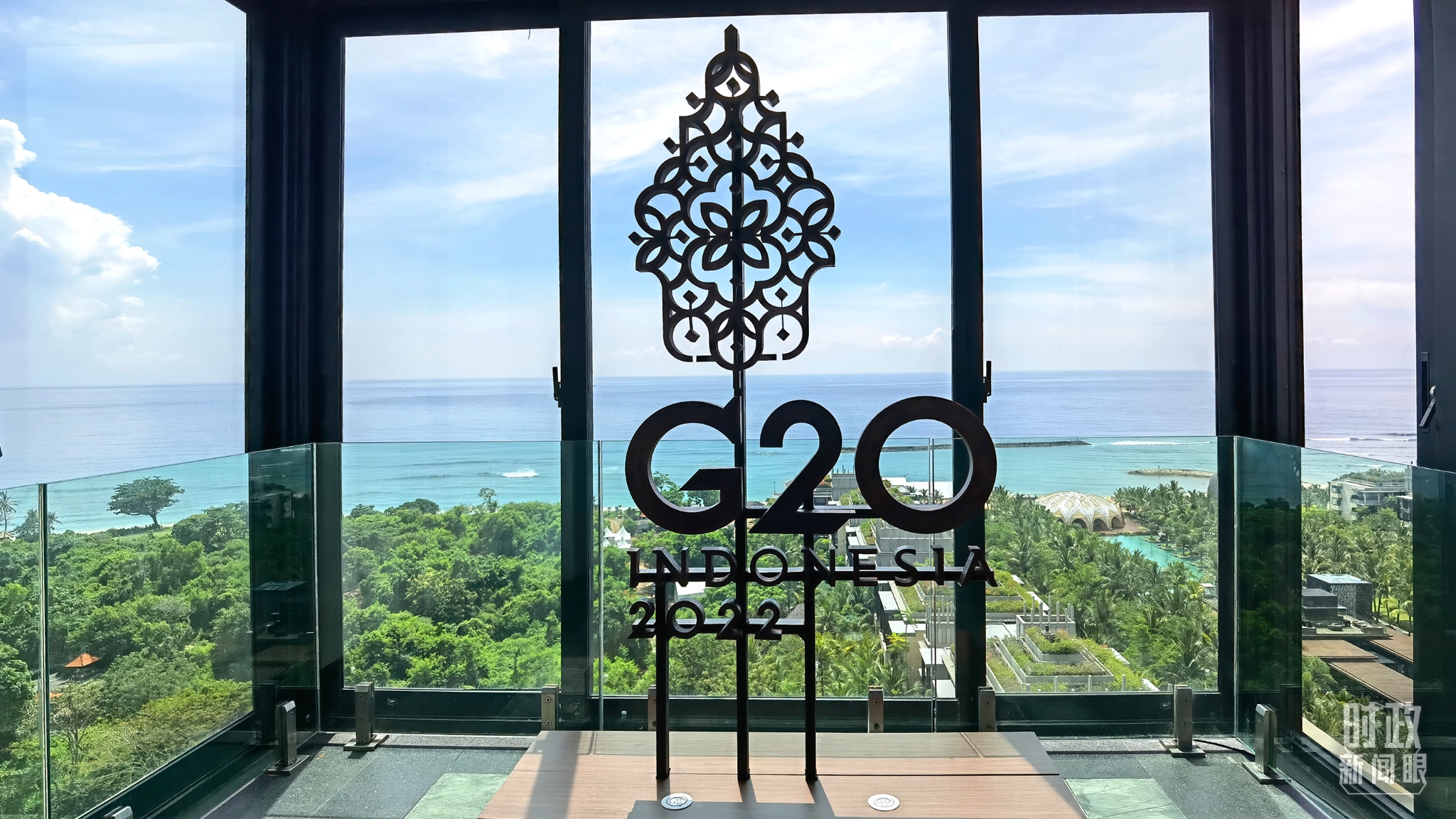 △巴厘島峰會主會場內各處的G20標識。(總臺央視記者馬亞陽拍攝)