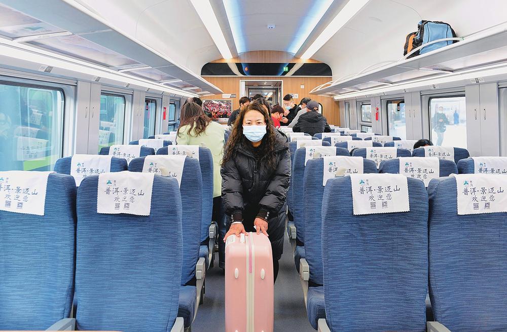 列車長(zhǎng)李瑤瑤介紹,昆明局集團(tuán)以打造中老鐵路高品質(zhì)列車服務(wù)為目標(biāo),積極為旅客提供安全、舒適的安馨旅途,列車自昆明站發(fā)車后僅在昆明南站停靠一次,之后便直達(dá)西雙版納,時(shí)間縮短,使得乘客能夠當(dāng)天返回昆明。(春城晚報(bào) 記者孫江葒 文 龍宇丹 攝)