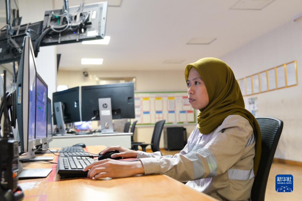 9月22日,在位于印尼中蘇拉威西省莫羅瓦利縣的中國印尼綜合產(chǎn)業(yè)園青山園區(qū),27歲的莫羅瓦利園區(qū)技術(shù)主管菲特里亞尼在調(diào)度室內(nèi)工作。新華社記者 徐欽 攝