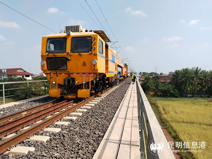 昆明信息港訊 記者上官艷君 11月16日,一列由中國(guó)自主生產(chǎn)先進(jìn)的搗固穩(wěn)定車和道岔?yè)v固車,組成大型養(yǎng)路機(jī)械施工車組伴隨著尖銳的汽笛聲進(jìn)入中老鐵路老撾段,正式對(duì)線路設(shè)備進(jìn)行養(yǎng)護(hù),讓列車運(yùn)行更平穩(wěn)更安全。