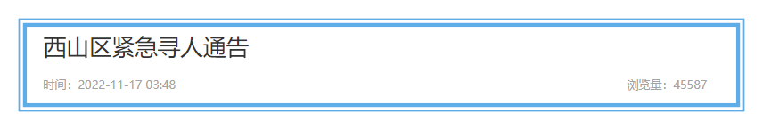 11月17日,西山區(qū)發(fā)布緊急尋人通告,2022年11月12日0時(shí)至17日0時(shí),在西山區(qū)??诮值涝屏仔^(qū)、西山區(qū)??诮值涝铺旎饾h有 限公司、西山區(qū)??诮值涝屏仔^(qū)農(nóng)貿(mào)市場(chǎng)相關(guān)區(qū)域有活動(dòng)軌跡的人員及與該區(qū)域人員有接觸的人員,請(qǐng)立即向所在村(社區(qū))報(bào)備,配合落實(shí)流調(diào)排查、核酸檢測(cè)等措施。詳情如下: