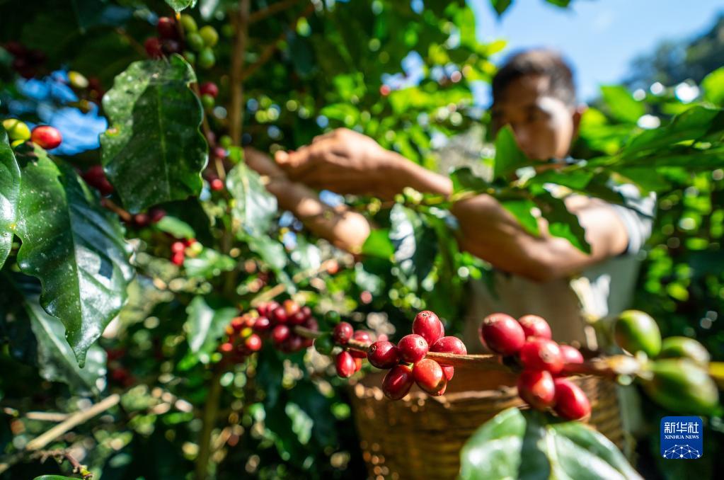 近日,云南省普洱市各咖啡產(chǎn)區(qū)迎來(lái)采收季。以茶馬古道、普洱茶聞名的普洱市,近年來(lái)成為中國(guó)種植面積最大、產(chǎn)量最多的咖啡產(chǎn)區(qū)。2021年普洱咖啡種植面積達(dá)66.8萬(wàn)畝、產(chǎn)量4.6萬(wàn)噸。(新華社記者 江文耀 攝)