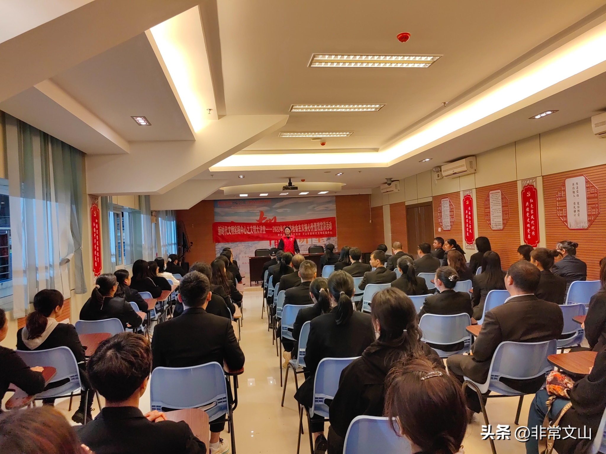 聚焦“突破型”宣講,打破常規(guī)“創(chuàng)新講”。聯(lián)動(dòng)省、州、市多個(gè)部門,首次聯(lián)袂打造了本土話劇《指路碑》,集中反映了文山人民銘記先烈、崇尚英雄,不忘初心、牢記使命,邁步新征程、建功新時(shí)代,以實(shí)際行動(dòng)向黨的二十大獻(xiàn)禮;利用文山市在省級(jí)“首創(chuàng)”的文明巴士宣講,聯(lián)動(dòng)3個(gè)街道38個(gè)城鎮(zhèn)社區(qū),180余名志愿者在32輛文明巴士上開(kāi)展了學(xué)習(xí)宣傳貫徹黨的二十大精神,結(jié)合“創(chuàng)文創(chuàng)衛(wèi)”“民族團(tuán)結(jié)”等黨委政府中心工作,開(kāi)展各類文明巴士宣講200余場(chǎng)次,惠及文山城區(qū)5余萬(wàn)人次。將老電影搬上新舞臺(tái),通過(guò)打造影視宣傳流動(dòng)陣地,在火炬廣場(chǎng)、七花廣場(chǎng)、華龍湖廣場(chǎng)等人流密集的地方進(jìn)行電影展播,先后展播了《戰(zhàn)狼》《建國(guó)大業(yè)》《楊善洲優(yōu)秀共產(chǎn)黨員楷?!返?0多部愛(ài)國(guó)題材電影1000余場(chǎng)次;將“七點(diǎn)鐘課堂”志愿服務(wù)品牌提檔升級(jí)為新版本的“七都大講堂”志愿服務(wù)品牌,在新時(shí)代文明實(shí)踐中心啟動(dòng)以專題講座、讀書(shū)分享會(huì)、文藝晚會(huì)等形式的主題宣講,每晚常態(tài)化開(kāi)展宣講1場(chǎng),截止目前,共開(kāi)展42場(chǎng)次,輻射帶動(dòng)文山城區(qū)30余萬(wàn)群眾。