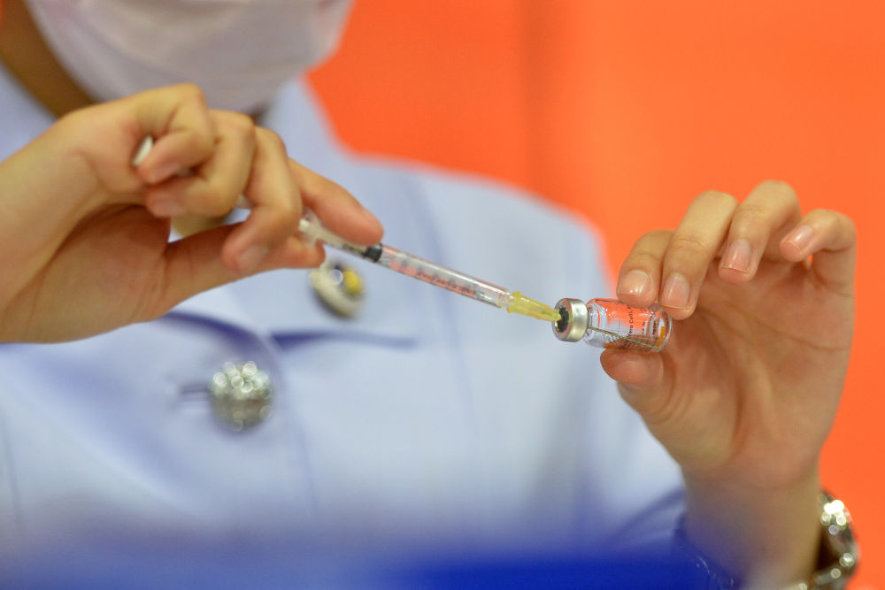2021年5月12日,醫(yī)護人員在泰國曼谷為民眾接種中國科興新冠疫苗。新華社發(fā)(拉亨攝)