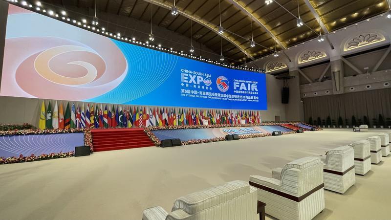 11月17日,南博會(huì)場(chǎng)館正緊鑼密鼓布展。云報(bào)客戶(hù)端 記者顧彬攝