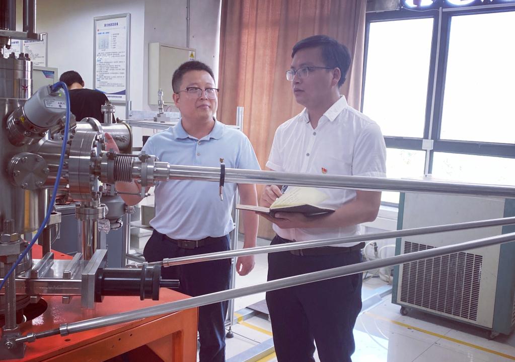 科技助理田勇(右)帶著從企業(yè)收集到的技術需求來到西南科技大學重點實驗室了解與需求相匹配的高校創(chuàng)新技術成果。(采訪對象供圖)