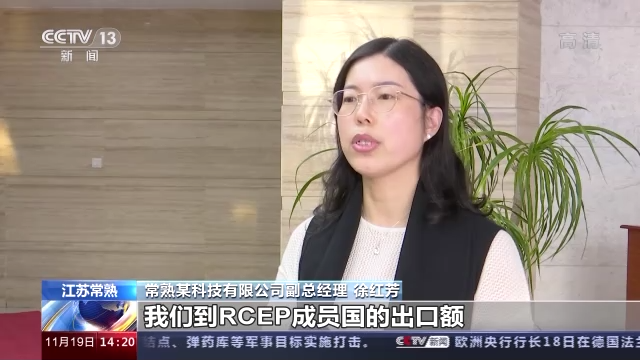 常熟某科技有限公司副總經(jīng)理 徐紅芳:今年前10個(gè)月我們到RCEP成員國(guó)的出口額同比增長(zhǎng)了近四成,共申請(qǐng)了49份RCEP證書(shū),合計(jì)金額706萬(wàn)美元,關(guān)稅減免近20萬(wàn)美元。