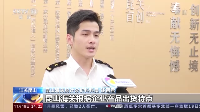 昆山海關(guān)統(tǒng)計(jì)分析科科員 錢(qián)智君:昆山海關(guān)根據(jù)企業(yè)產(chǎn)品出貨特點(diǎn),完善24小時(shí)預(yù)約放行、進(jìn)出區(qū)卡口支持等措施,充分發(fā)揮昆山綜保區(qū)物流分撥中心作用,指導(dǎo)企業(yè)充分運(yùn)用分送集報(bào)、匯總征稅等模式保障企業(yè)快速通關(guān)。