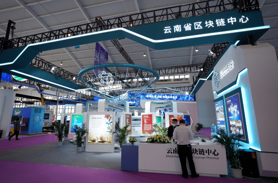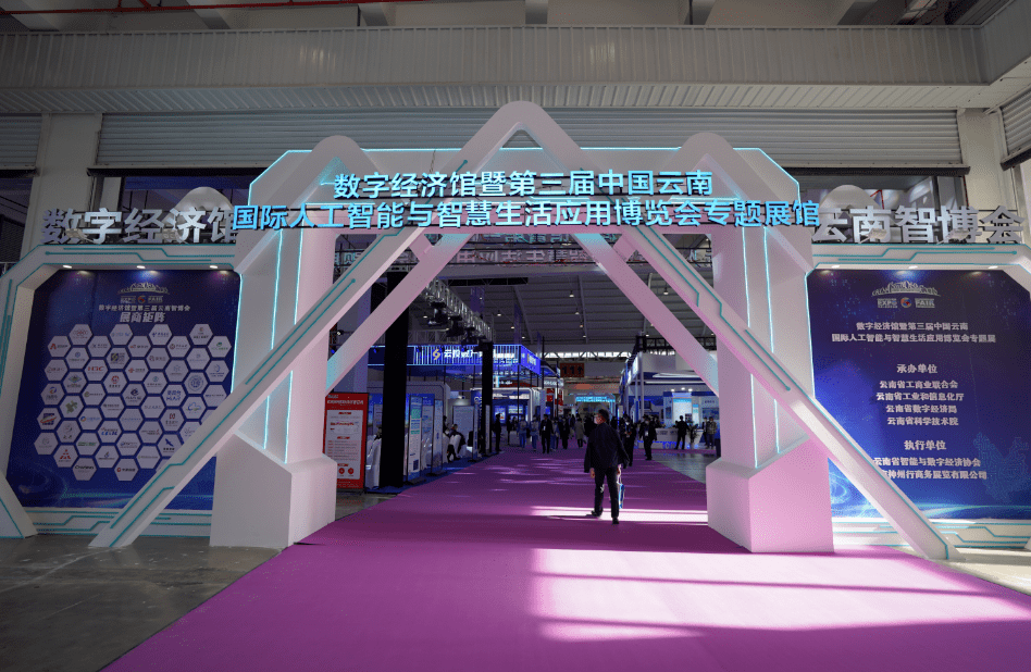 在數字經濟館內, 有云南省區(qū)塊鏈中心、京東云、云南省科學技術院等展臺,科技感十足。云南省交通投資建設集團有限公司還把便捷、高效的高速公路道閘搬上了南博會。不僅如此,依托數字賦能,AI+VR智慧安全帽等手段,工程建造中實現了智慧建造。