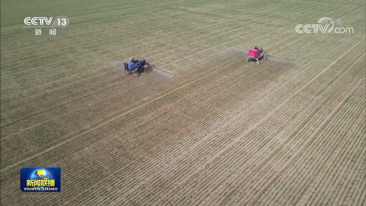 初冬時(shí)節(jié),在河南駐馬店,1190多萬畝冬小麥已經(jīng)出苗,農(nóng)技人員針對今年冬小麥田間雜草比較多的問題,利用大型噴霧機(jī),實(shí)施除草作業(yè)。