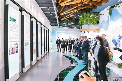 日前,在武漢參加《濕地公約》第十四屆締約方大會(huì)的中外代表參觀中國(guó)履行《濕地公約》30周年成就展。金振強(qiáng)攝