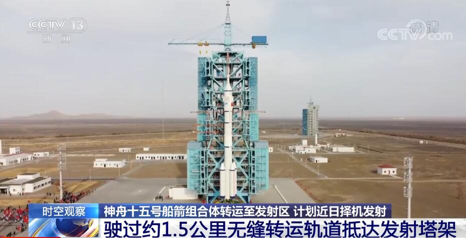 總臺記者 李曉旭:執(zhí)行此次神舟十五號載人飛行任務(wù)的船箭組合體,經(jīng)過1.5小時(shí)的轉(zhuǎn)運(yùn)已經(jīng)到達(dá)發(fā)射區(qū),這就意味著長征二號F遙15運(yùn)載火箭已經(jīng)進(jìn)入最后的發(fā)射準(zhǔn)備階段。